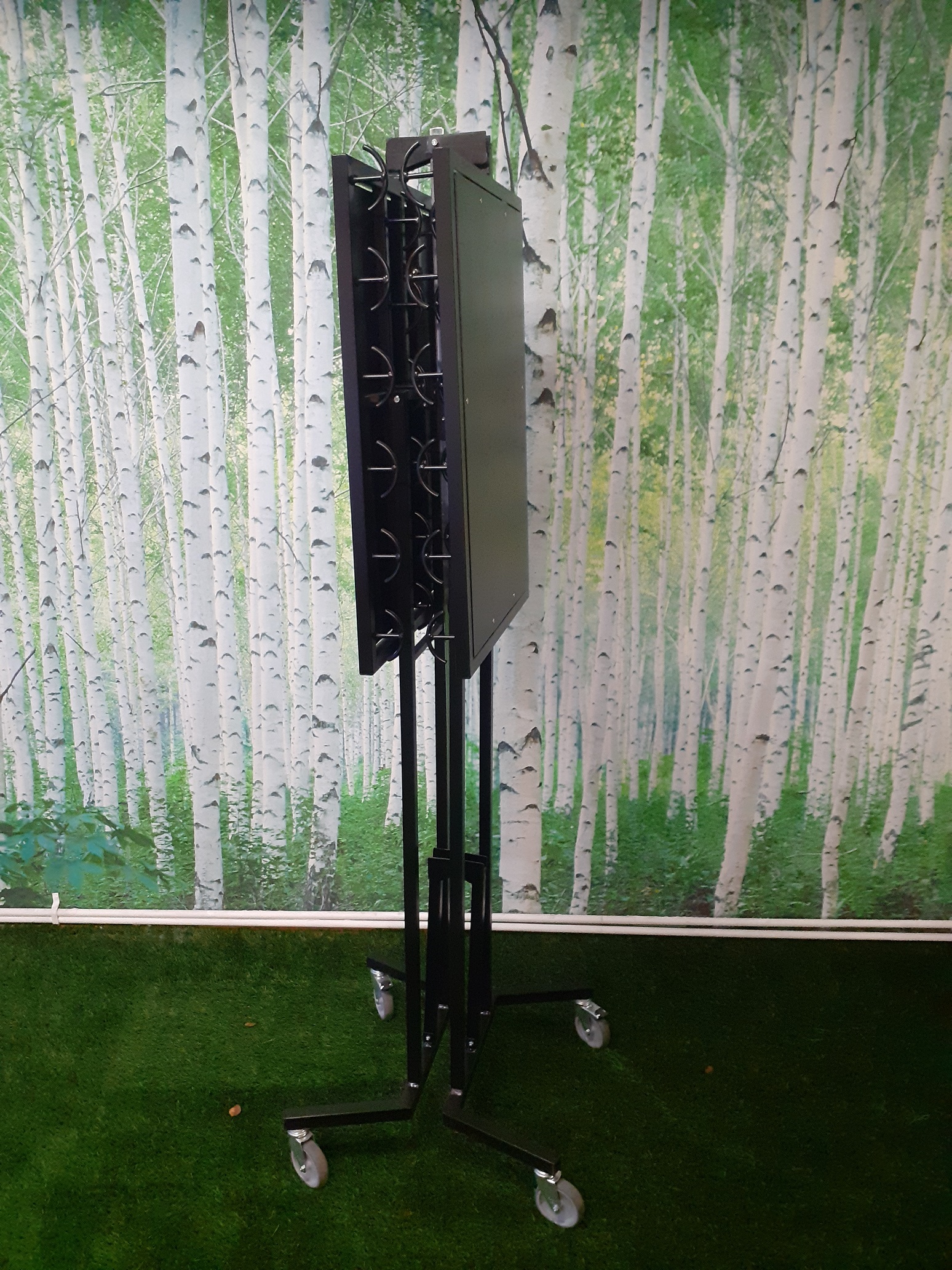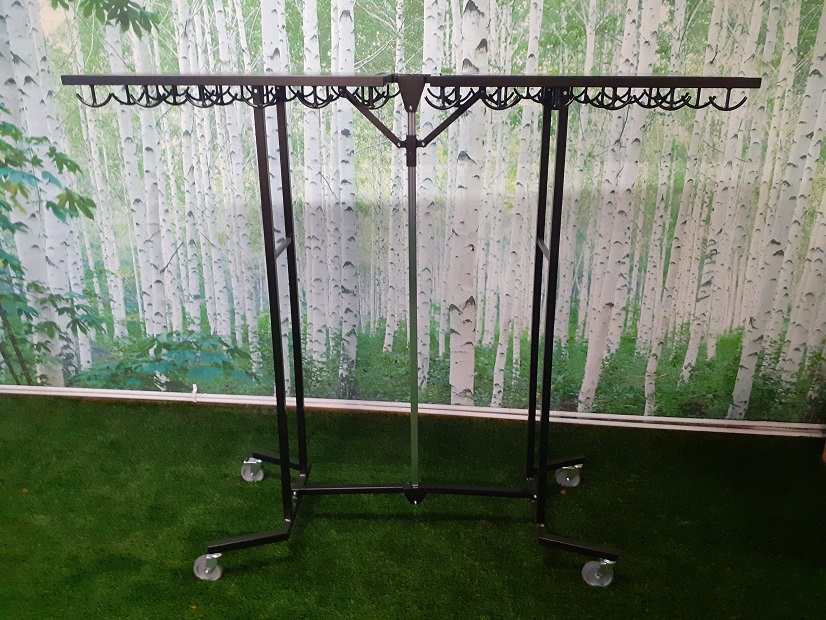 Ilmajoen Teräsputkikalusteen kokoontaittuva 96-paikkainen naulakko on suunniteltu erityisesti tilapäisiin tarpeisiin, kuten messuille, seminaareihin, juhlatilaisuuksiin ja muihin tapahtumiin, joissa tarvitaan tehokasta ja siistiä vaatesäilytystä. Tämä liikuteltava ja kokoon taittuva naulakko tarjoaa 96 ripustuspaikkaa, mikä tekee siitä ihanteellisen ratkaisun suurille vierasmäärille. Toimii myös pysyvänä ratkaisuna yrityksissä ja muissa julkisissa kohteissa, joissa on isommat kävijämäärät.